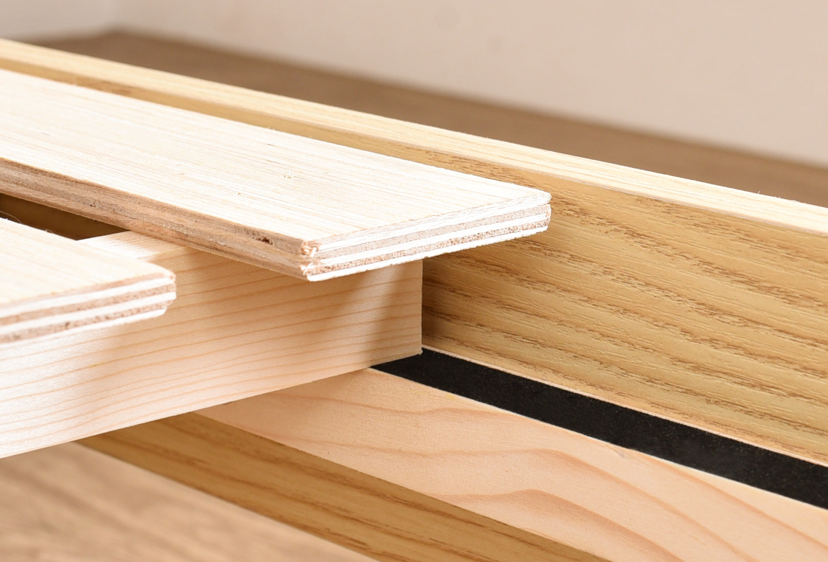 お部屋をすっきり広々と見せる、木目調デザインのベッドフレーム。直線的で、無駄をそぎ落としたスタイリッシュな見た目で、クセが少なく、幅広いテイストのお部屋とも相性の良い高いデザインとなっております。ベッド下の引出しは、お部屋の貴重なスペースを無駄なく活用する豊富な収納スペースに。中の収納物が見えない“隠す収納”で生活感を抑えて、お部屋をすっきり見せて頂けます。ヘッドボードはコンセント付きで、就寝中のスマホの充電にも便利です。