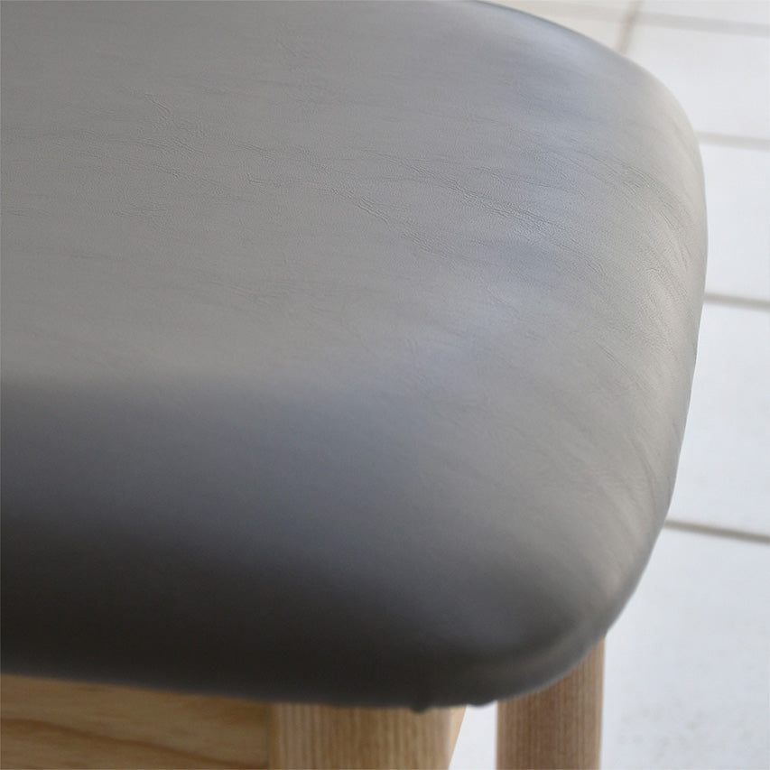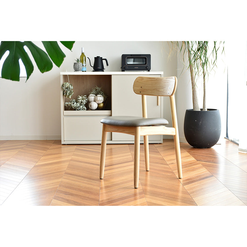 アシュ無垢材の温かみある本体と、PU生地の座面が特徴的なチェア。曲線的なデザインが可愛らしく、どんなインテリアにもマッチします。リビングやダイニングにぴったりで、ウレタン入りの座面が快適な座り心地を提供します。