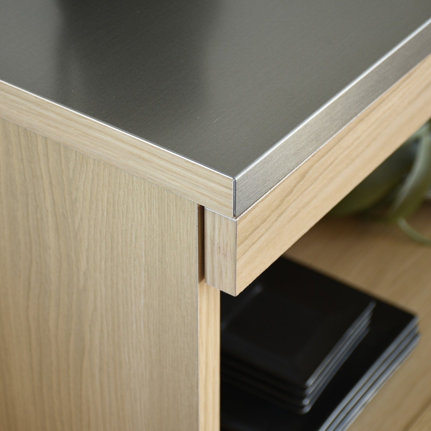 ロシード は、あなたのキッチンをもっと便利で素敵にするカウンターです。ストッパー付きキャスターで好きな場所に移動でき、スペースに合わせた自由なレイアウトが叶います。天板には指紋が目立たず熱にも強い特殊加工鋼板を使用しているから、毎日のお手入れもラクラク。背面も丁寧に仕上げられているので、キッチンの間仕切りとしても活躍します。デザイン性と実用性を兼ね備えた、毎日使いたくなるキッチンカウンターです。